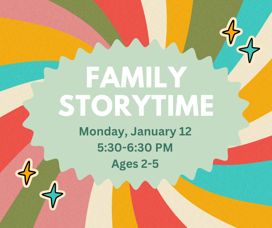 Join us Monday, January 12 for Family Storytime, designed especially for children ages 2–5 and their grown-ups!🕠 Time: 5:30–6:30 PM🎶 What to expect:Engaging storiesFun songs and movementHands-on ac...